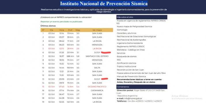 Entre el 2 y 3 de octubre se registraron distintos sismos en el país y Jujuy estuvo entre las provincias afectadas. El 3 de octubre a la 1:26 se produjo un temblor de magnitud 3.1 con una profundidad de 251 kilómetros. Un día antes, el 2 de octubre a las 9:39, se reportó otro movimiento de 2.9 grados a 212 kilómetros de profundidad. Ambos fueron leves y sin consecuencias materiales ni personales, aunque confirman que la región continúa dentro de un área con actividad sísmica frecuente.